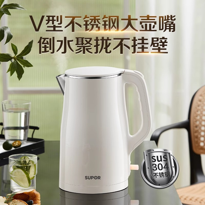 苏泊尔(SUPOR)电水壶烧水壶 1.5L容量 304不锈钢热水壶电热水壶 双层防烫全钢无缝开水壶 SW-15T80A