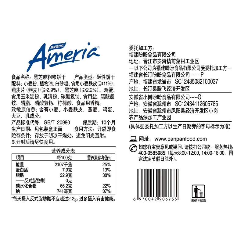 商品名称:盼盼粗粮黑芝麻梅尼耶饼干360g整箱装代餐休闲零食营养早餐下午茶