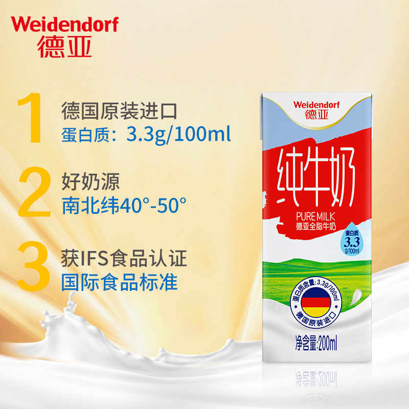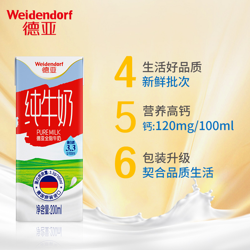商品名称:德亚德国原装进口全脂纯牛奶200ml*30盒高钙牛奶早餐奶整箱
