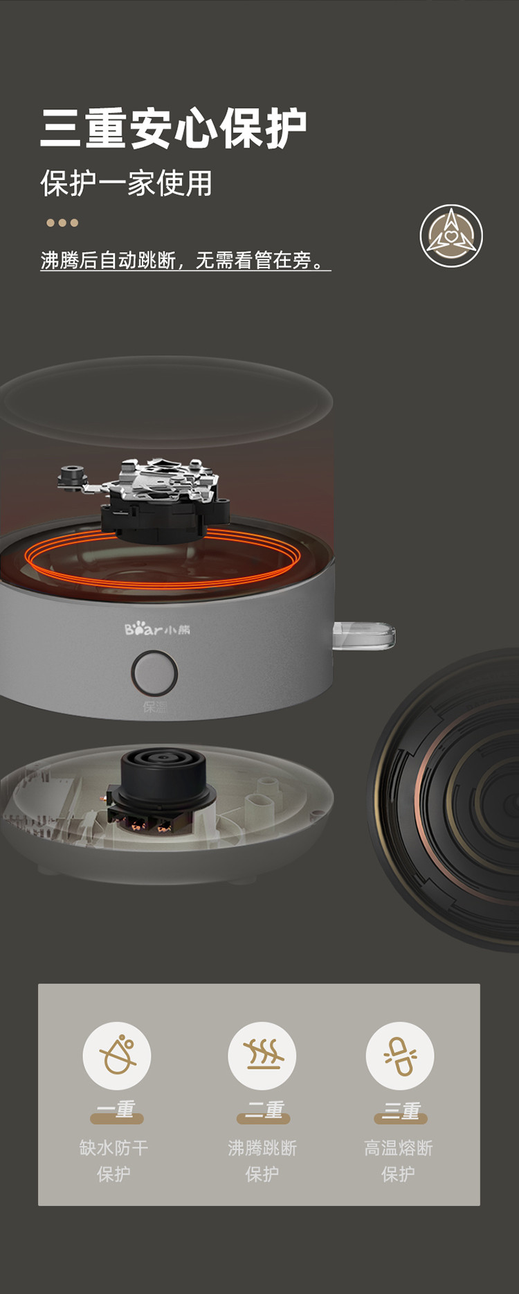 商品名称:小熊(bear)电水壶电热水壶55度保温功能一体 无缝内胆 ZDH-Q17U7