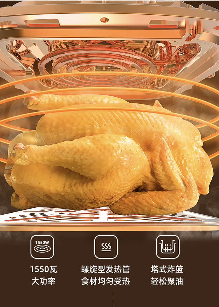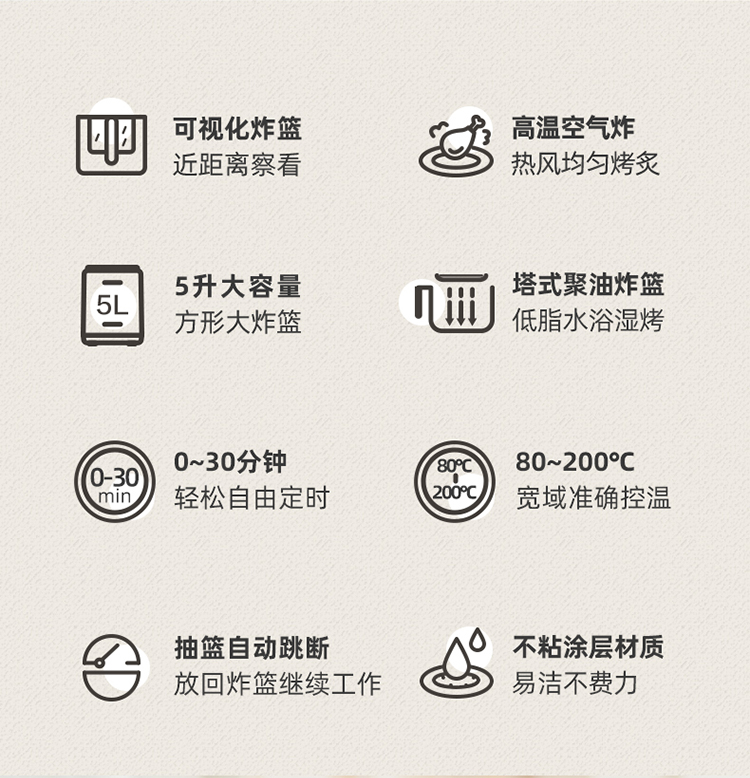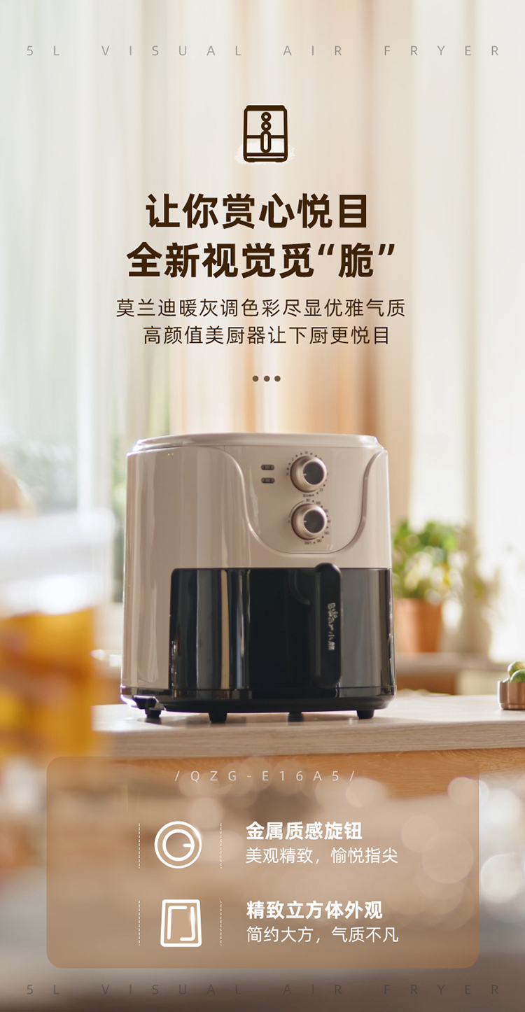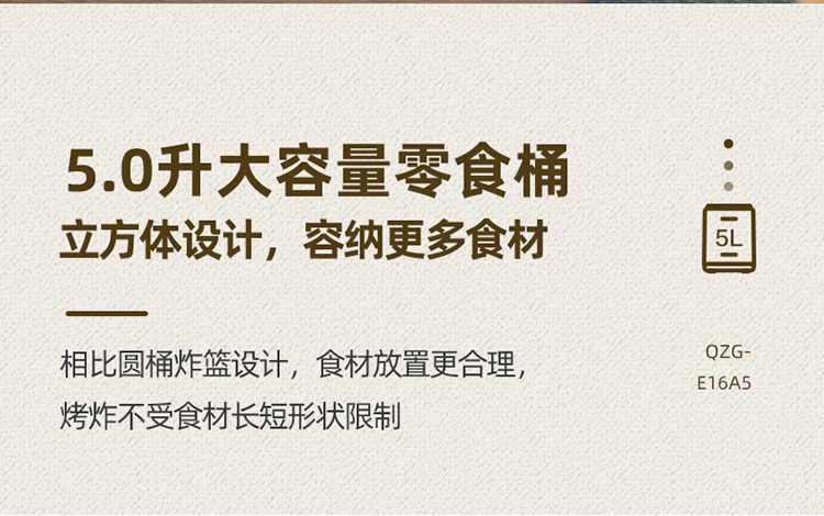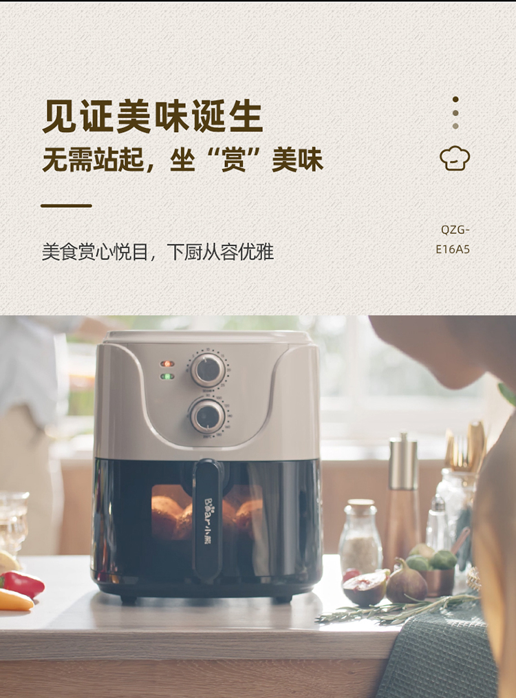 商品名称:小熊(Bear)空气炸锅 5L大容量大功率无油烟电炸锅薯条机烤箱可视窗口烤箱炸锅 QZG-E16A5