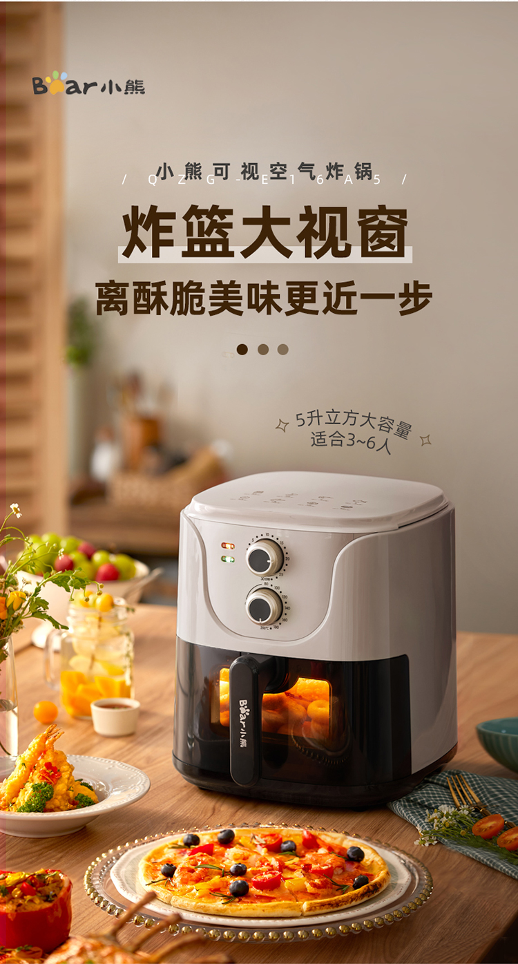 小熊(Bear)空气炸锅 5L大容量大功率无油烟电炸锅薯条机烤箱可视窗口烤箱炸锅 QZG-E16A5