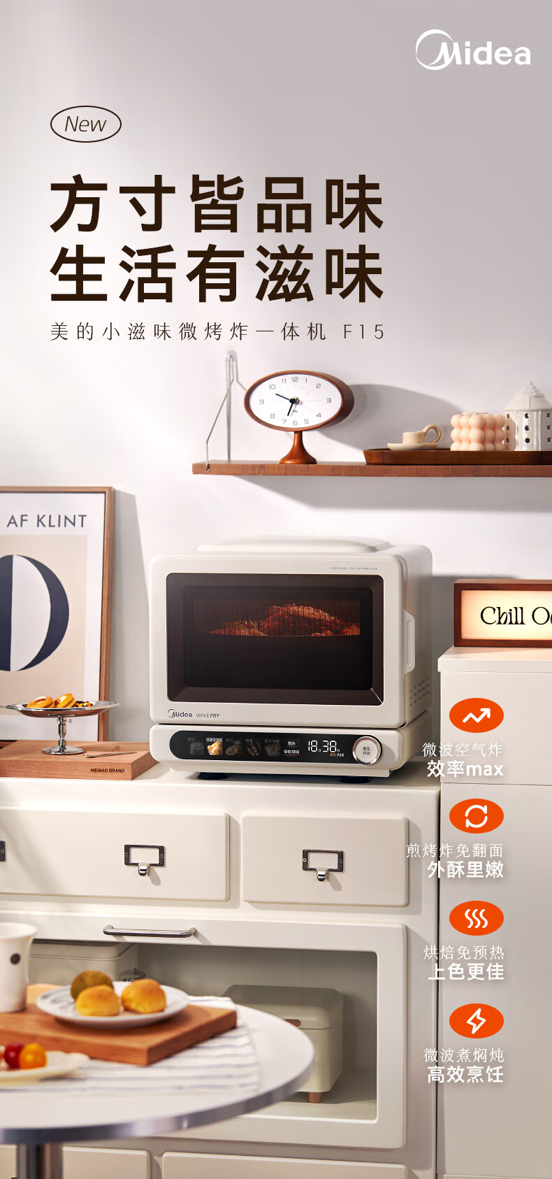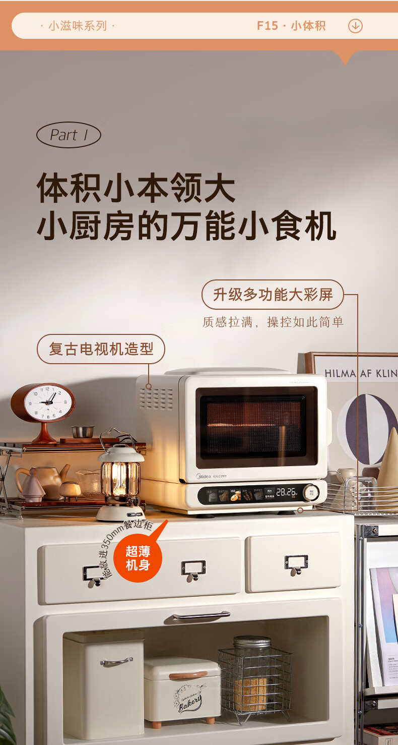 美的(Midea)小滋味2.0微烤炸一体机彩膜触控变频平板顶部烤管热风高颜值微波炉电烤箱空气炸一体F15