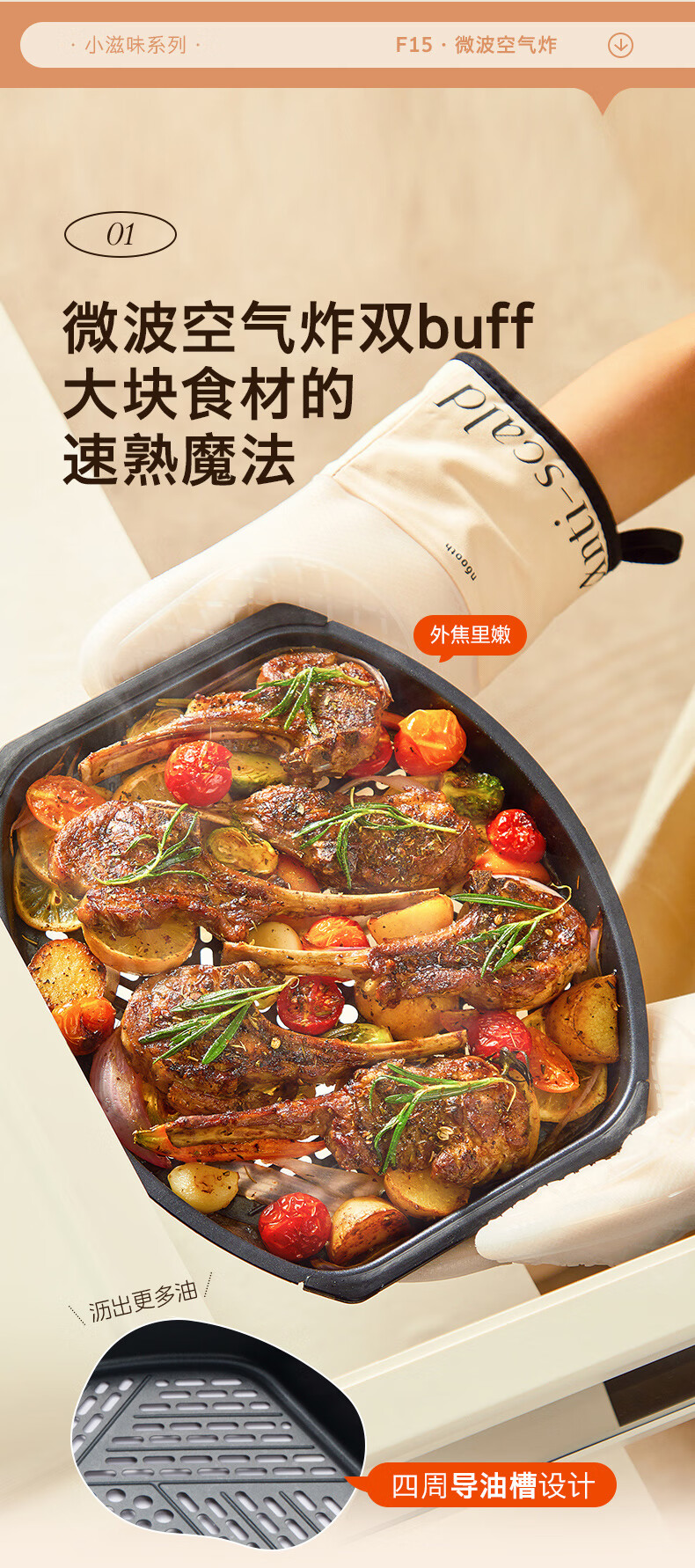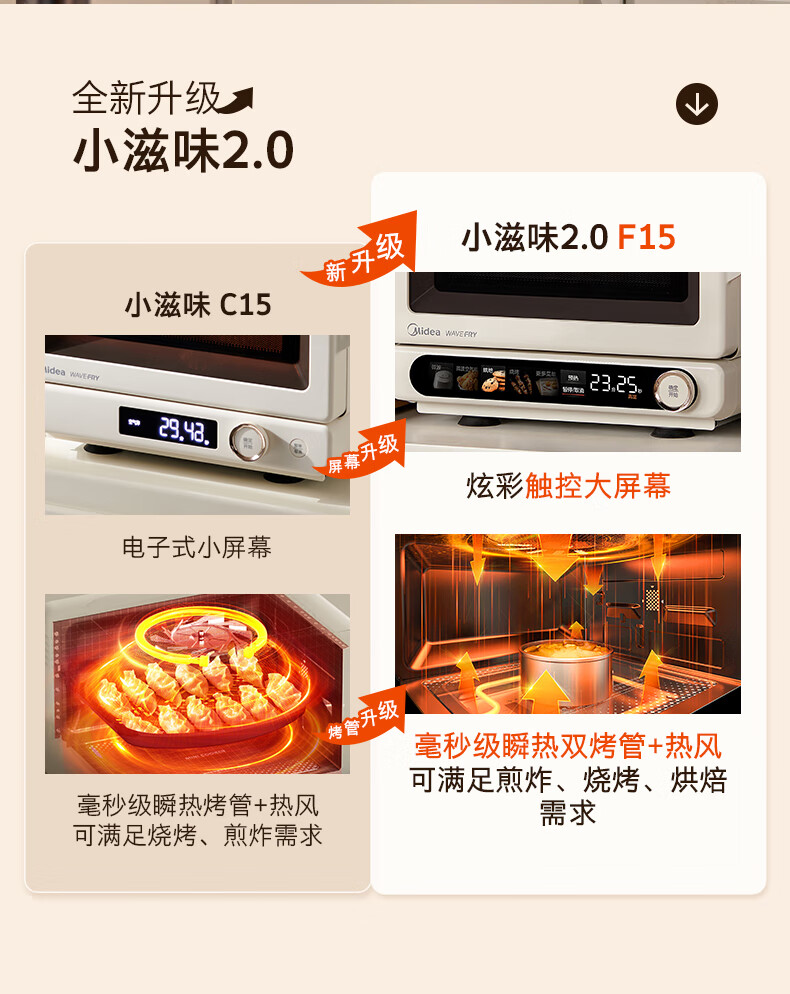 商品名称:美的(Midea)小滋味2.0微烤炸一体机彩膜触控变频平板顶部烤管热风高颜值微波炉电烤箱空气炸一体F15