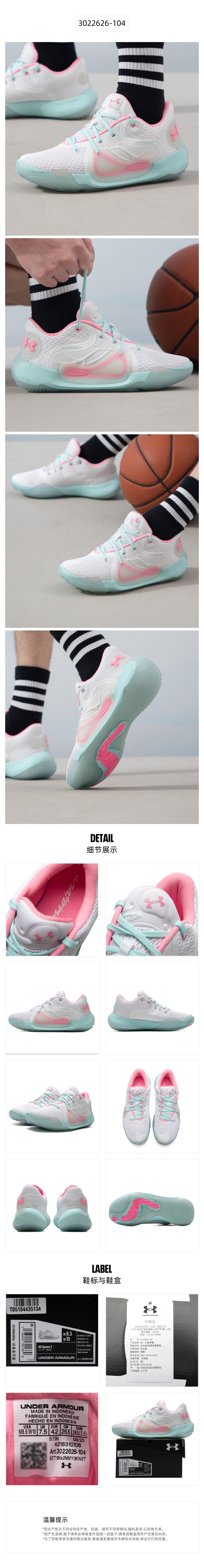 商品名称:安德玛UA Spawn2男子新款训练防滑耐磨低帮实战运动篮球鞋3022626-104 ZP